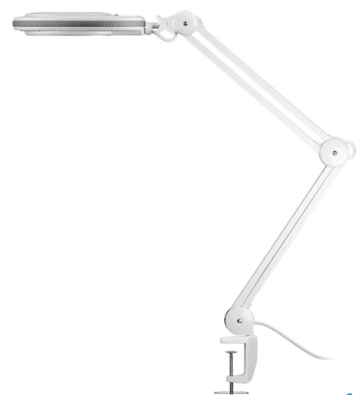 LED forstørrelseslampe med 127 mm krystalglaslinse, 1,75x forstørrelse og 3 dioptrier. Har fleksibel arm med 700 mm rækkevidde og 360° roterbart hoved. Leveres med bordklemme til op til 60 mm.