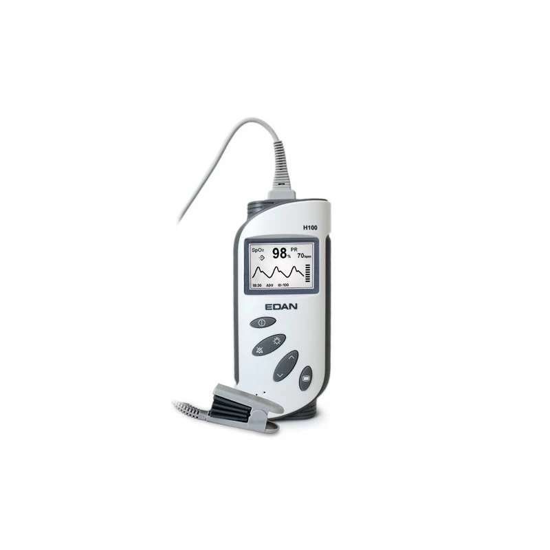 Profesjonell oksygenmåler / pulsoximeter / metningsmåler med alarmgrenser og trendkurver. Leveres med voksen sensor.