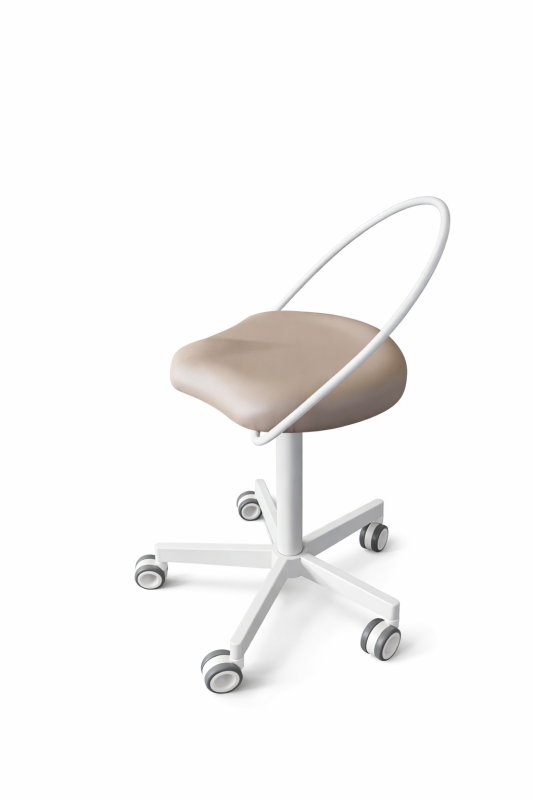 Det spesialformede sykkelsetet sikrer en naturlig sittestilling, hvor bekkenet vippes riktig og ryggen avlastes. Resultatet er mindre belastning ved lange arbeidsdager og bedre ergonomi i klinisk arbeid, hvor presisjon og komfort er avgjørende.