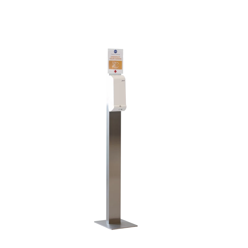Golvstång i metall med tillhörande elektrisk beröringsfri dispenser